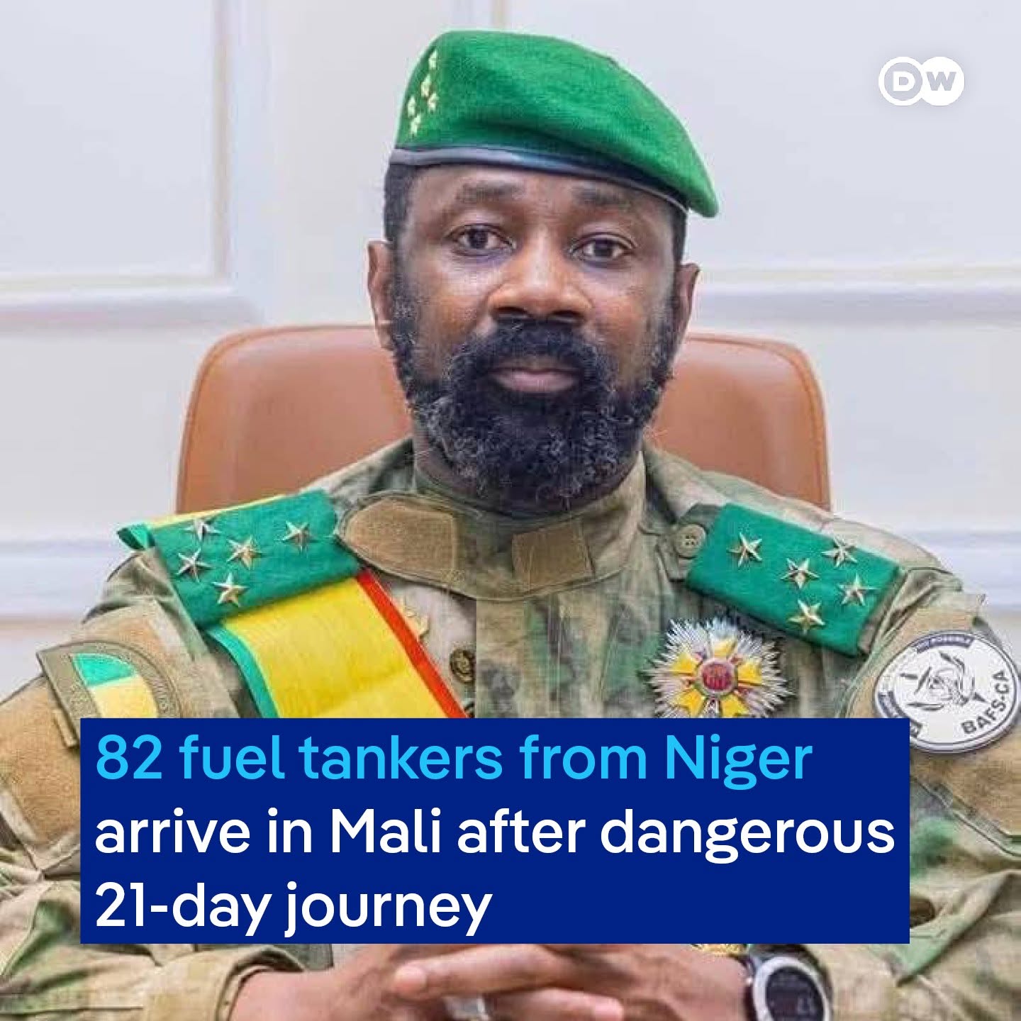 82 fuel tankers from Niger have arrived in Mali to ease severe shortages caused by insurgent blockades. The convoy took 21 days to cover the 1,400 km journey from Niamey to Bamako due to insecurity. Russia’s Africa Corps reportedly gave escort to the tanker convoys to prevent hijacking. For over two months, al Qaeda-linked militants have blocked fuel routes and attacked convoys, paralyzing the capital and pressuring the military junta. Russia has pledged up to 200,000 tonnes of fuel and agricultural supplies. Mali, Niger, and Burkina Faso—now in the Alliance of Sahel States—are fighting persistent jihadist insurgencies and have cut ties with France, left ECOWAS, and turned to Russia for support. #DWAfrica