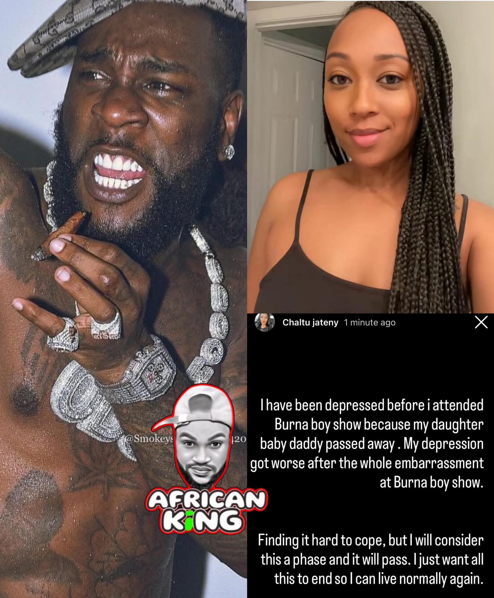 The woman Burna Boy drove out of his show has made more publications about what happened to her before the incident with Burna Boy, currently all Burna Boy shows I’ve not seen the amount of people who usually come to his show. We’ve been seeing a lot of empty chairs, and Burna Boy is not known for that .
